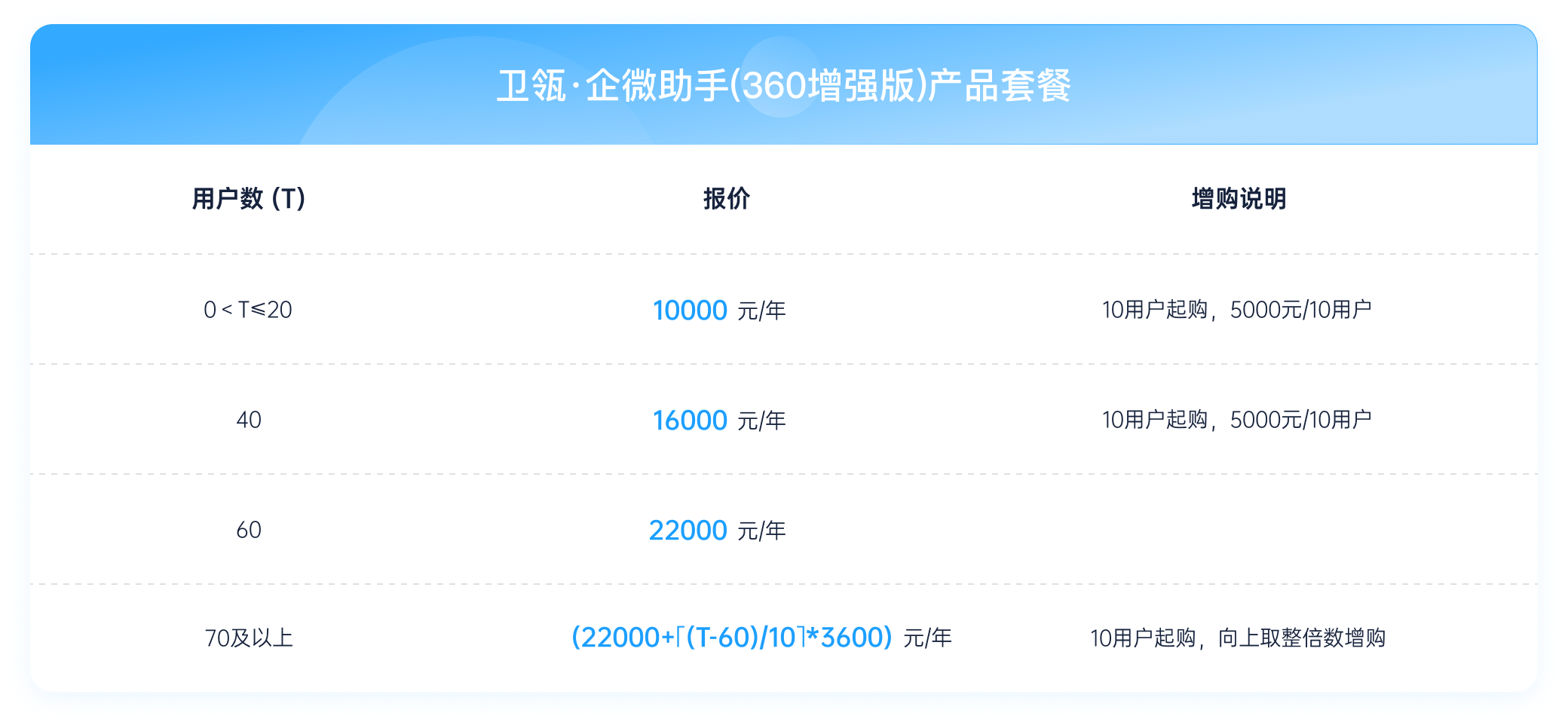360智慧商业用户专享卫瓴·企微助手优惠套餐