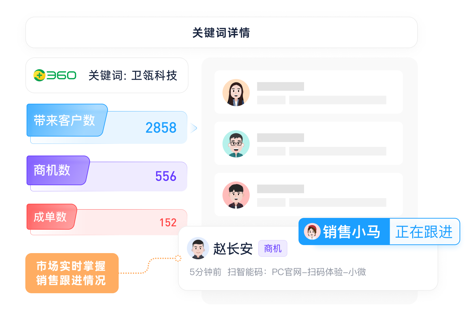- 及时了解销售跟进状态,实时追踪全渠道带来的线索转化效果